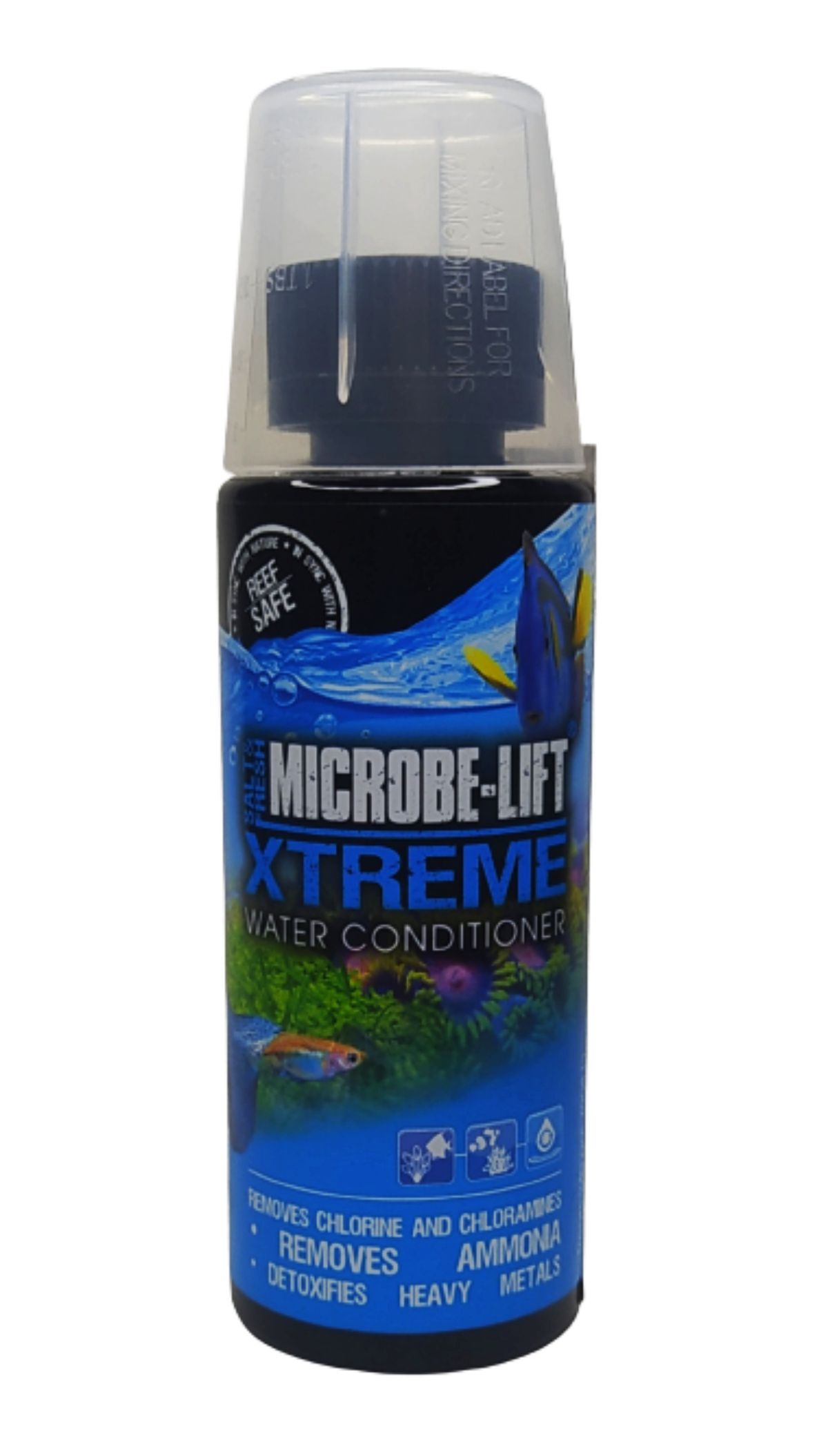 MICROBE-LIFT/XTreme é um condicionador de água com todas as funções em um único produto. Foi formulado para condicionar a água nova instantaneamente boa para os peixes. Deve ser utilizado na montagem de um novo lago ou aquário, na mudança de água, na adição de novos peixes, invertebrados, anfíbios ou plantas.