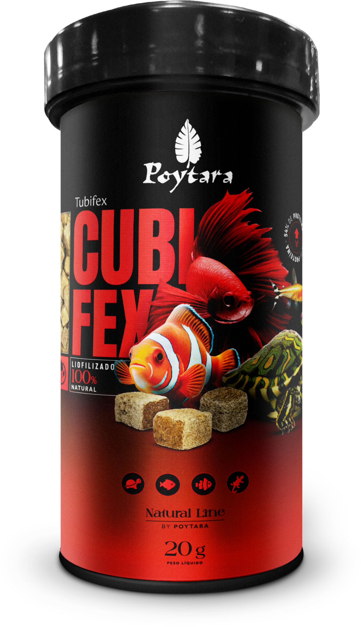 Cubifex Natural Line é um alimento específico, liofilizado e compactado em pequenos cubos, que podem ser utilizados como complemento nutricional a dieta básica de peixes, répteis, quelônios e aves. Um alimento altamente palatável, fonte de proteína e perfil lipídico equilibrado, auxilia para uma dieta variada, nutritiva e energética.
