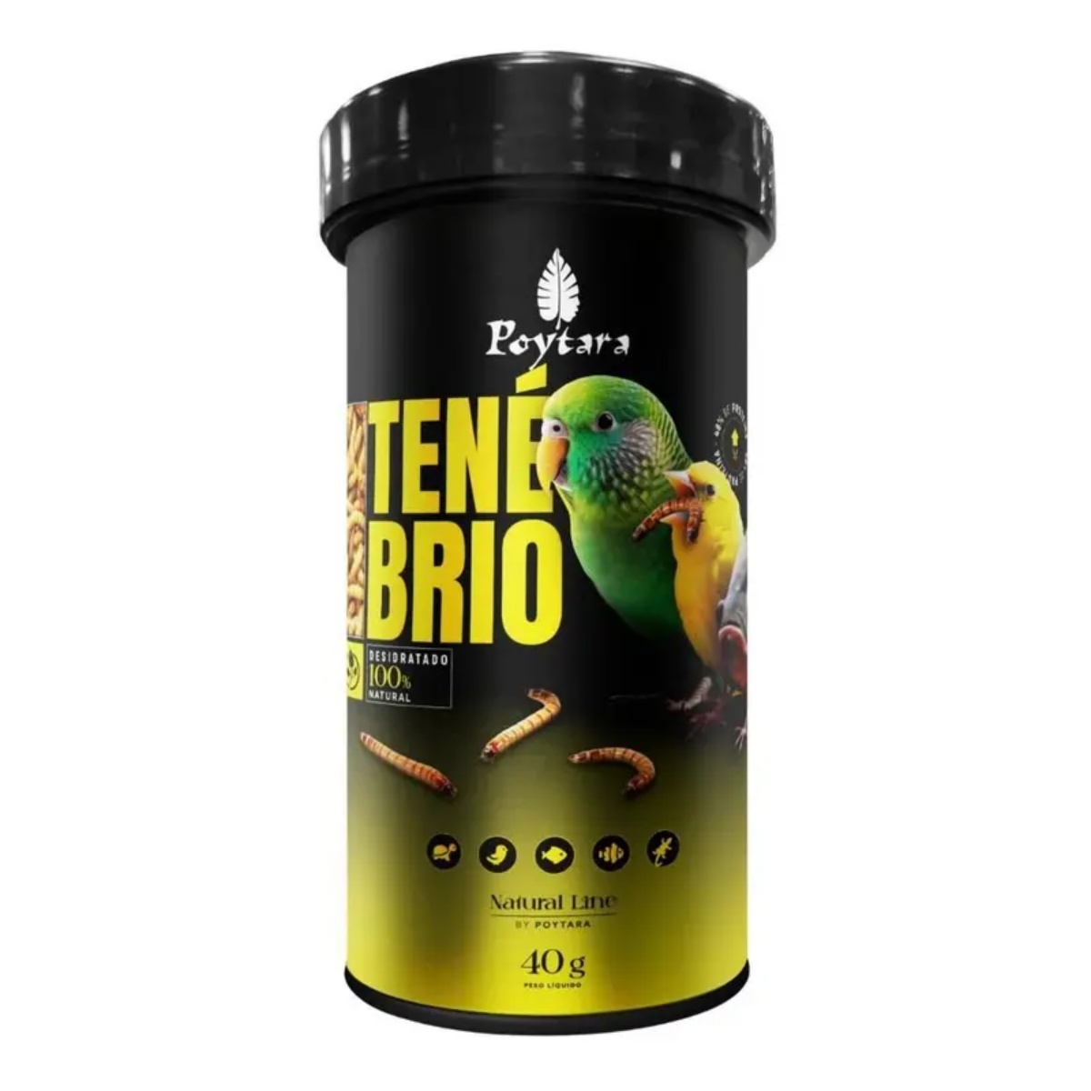 Tenébrio Natural Line é um alimento específico, natural e saudável, que pode ser utilizado como complemento nutricional a dieta básica de peixes, répteis, quelônios e aves. Um alimento altamente palatável, fonte de proteína de fácil digestão que auxilia para uma dieta variada, nutritiva e energética.